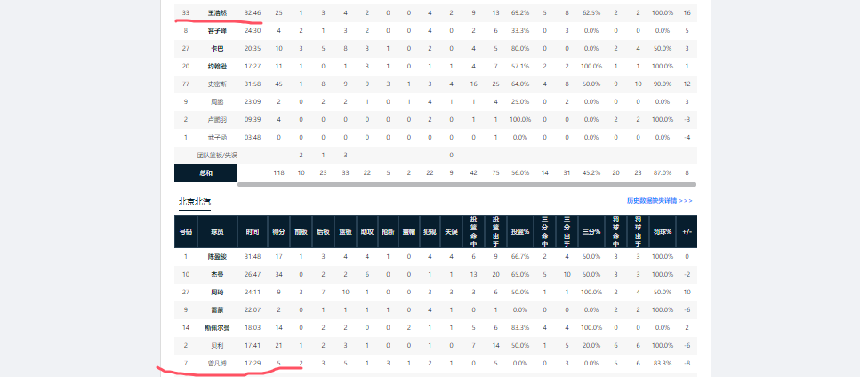 曾凡博全场出战17分29秒,投篮5中0,三分3中0,仅通过6次罚篮得到5分,同时有5篮板1助攻3抢断。